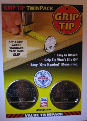 Has your tape measure ever slipped off the edge of a wall, or off the end of a long board? Well my tapes have, so I invented the Grip Tip to solve the problem. I think you’ll find it works for you as well.